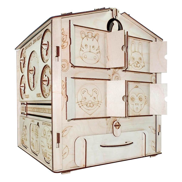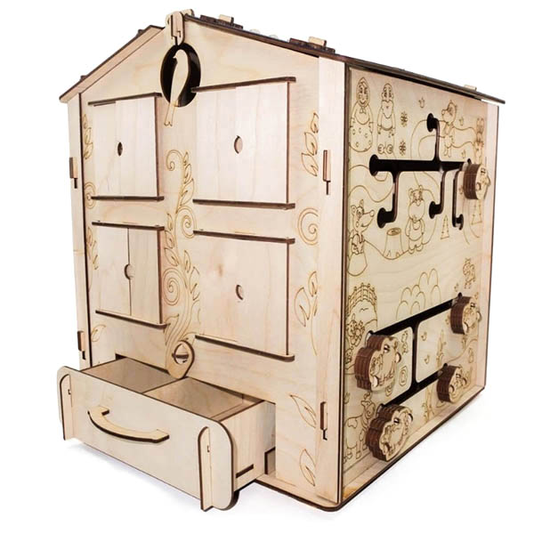 Поверхность бизибокса ничем не обработана, поэтому ваш ребенок может с помощью красок или карандашей придать домику яркий красочный вид, разработать для него уникальный декор.