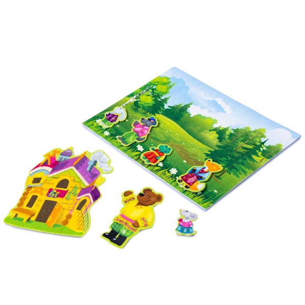 С данным набором можно разыграть классическую сказку "Теремок" с использованием готового сценария и фонограммы (не входят в набор) – их можно просмотреть и скачать на нашем сайте в разделе "Поддержка".