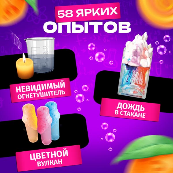 С этим познавательным набором для опытов ребёнок почувствует себя настоящим учёным. Малыш узнает об удивительных химических свойствах и проведёт 58 увлекательных экспериментов.