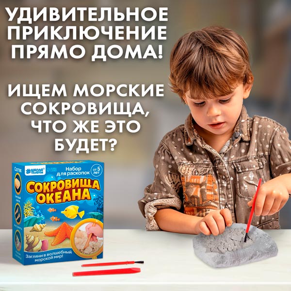 С набором из серии "Сокровища океана" ребёнок почувствует себя настоящим археологом и сможет раскрыть тайны подводного мира.