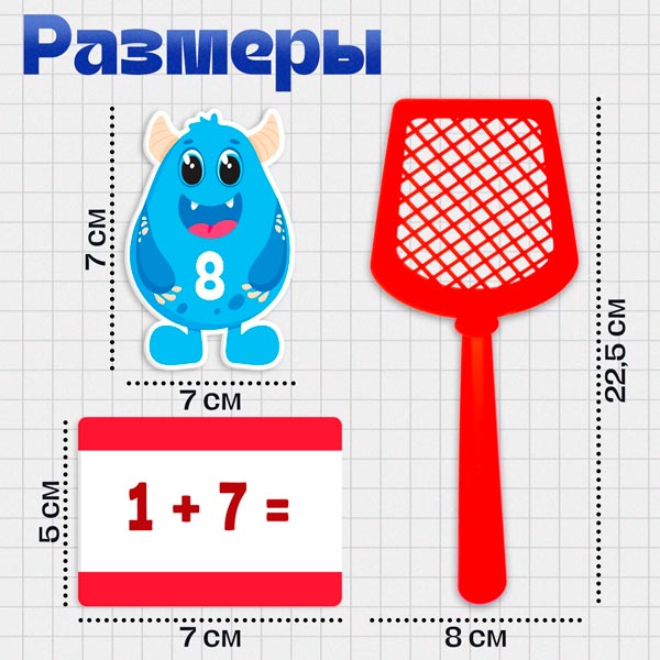 - Хлопушки (пластик): 22,5 х 8 х 0,6 см.