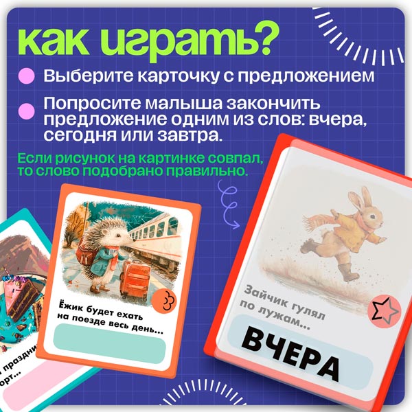 Играя с карточками, ребёнок развивает кругозор, логику и память. Задания построены так, чтобы малыш мог легко понять разницу между временами и научиться правильно использовать глаголы. Это отличный способ подготовить ребёнка к школе и сделать обучение интересным.