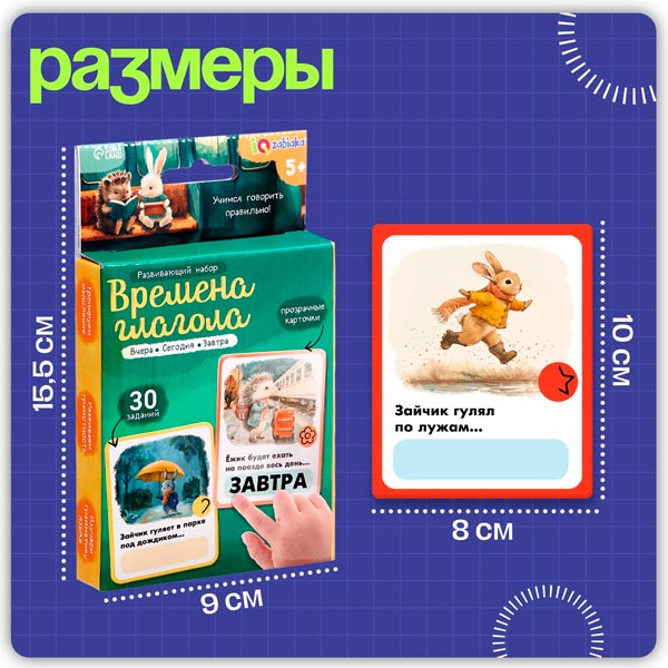 Набор "Времена глагола" — это увлекательный способ познакомить ребёнка с основами языка и развить важные навыки. В комплекте 30 карточек с заданиями, которые помогут ребёнку освоить понятия прошлого, настоящего и будущего.