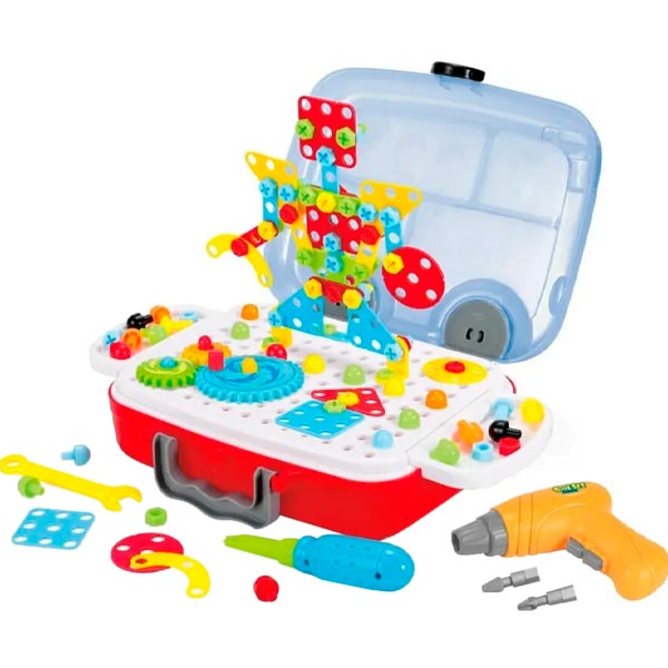 При помощи отвёртки, гаечного ключа и шуруповёрта ребёнок сможет собрать различные фигурки.