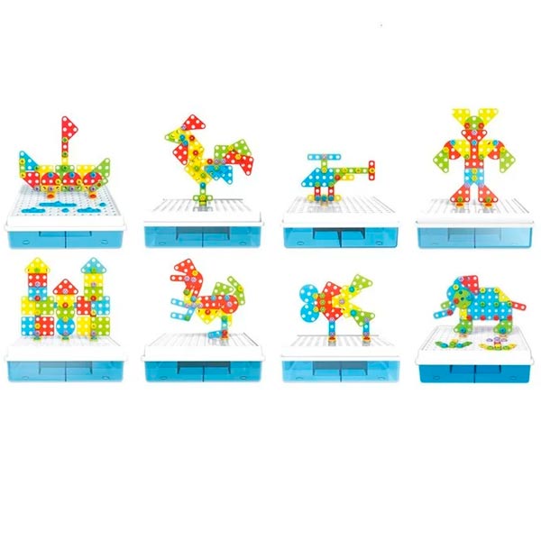 - Набор совмещает в себе сразу две игровые формы: конструктор и мозаику.