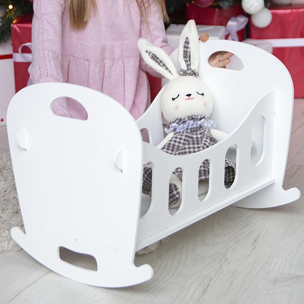 Деревянная игрушка WOODY Кроватка-качалка для кукол и пупсов до 45 см - большая, прочная и надёжная. Белый цвет кроватки актуален для современного интерьера детской комнаты. Понравится как девочкам, так и мальчикам, которые любят играть в куклы.