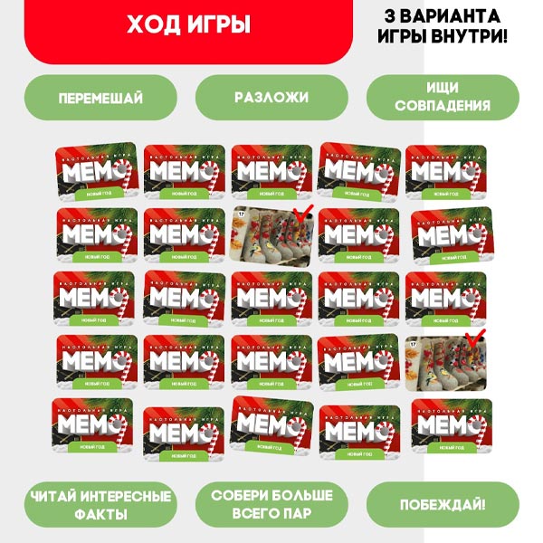 Эта простая и увлекательная игра станет отличным дополнением новогоднего вечера. Ведь она не просто подарит хорошее настроение, но и позволит потренировать внимание и память всех собравшихся!
