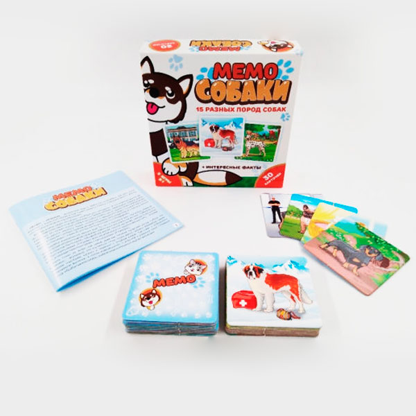 Настольная игра Мемо Собаки - это яркая развивающая настолка, которая подойдет для детей и взрослых разных возрастов от 2 до 99 лет.