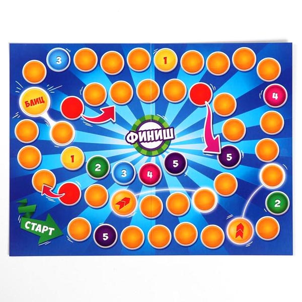 Поле для игры непростое — на нем есть особые места, попав на которые вы можете переместиться вперед или назад или получить специальное задание. Благодаря им можно обеспечить победу своей команде. Заинтригованы? Тогда скорее открывайте коробку и читайте правила!