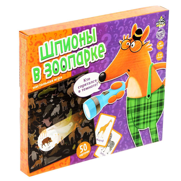 Настольная игра "Шпионы в зоопарке" рекомендована детям старше 5 лет и рассчитана на 2–4 участников. Она развивает внимание, скорость мышления, моторику и кругозор.