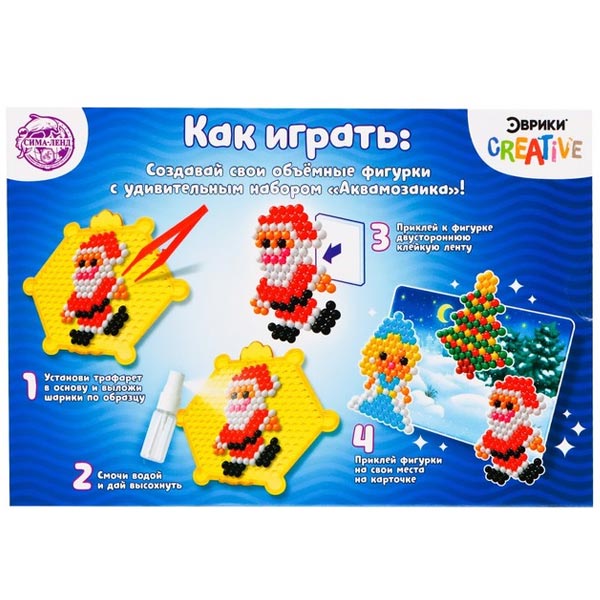 С аквамозаикой от торговой марки "Эврики" ребёнок соберёт объёмные фигурку из цветных бусинок. Детали плотно скрепляются друг с другом. Из бисера можно сделать интересную аппликацию на красочном фоне.