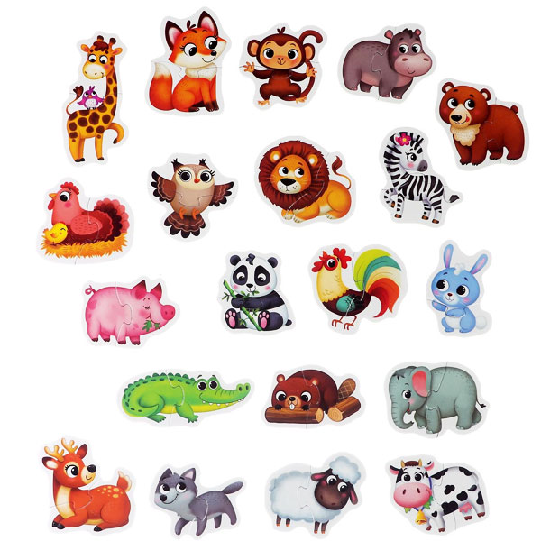 Макси-пазлы "Весёлые зверята" — это 40 деталей, из которых ребёнок соберёт 20 разных пазлов. В процессе малыш познакомится с животными.