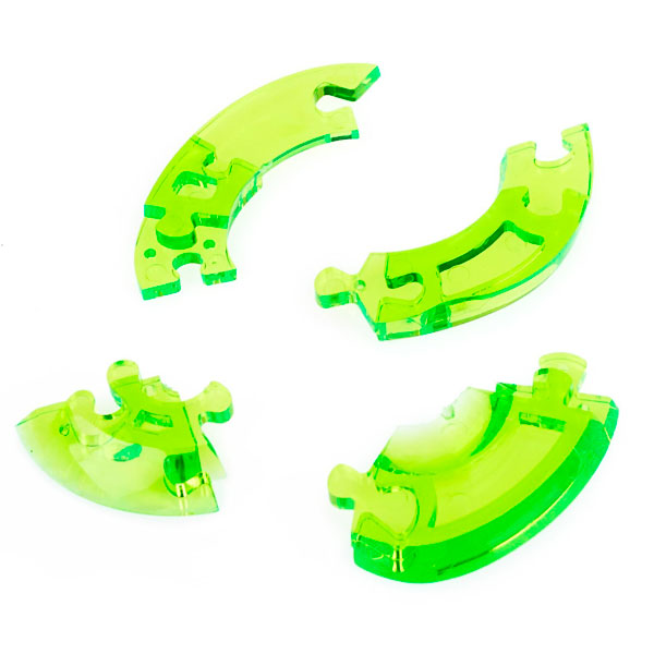 Детали пазла выполнены из полупрозрачного пластика. Они легко соединяются между собой без клея и в результате образуют объёмную фигуру. Для сборки модели необходимо разместить элементы в правильной последовательности.