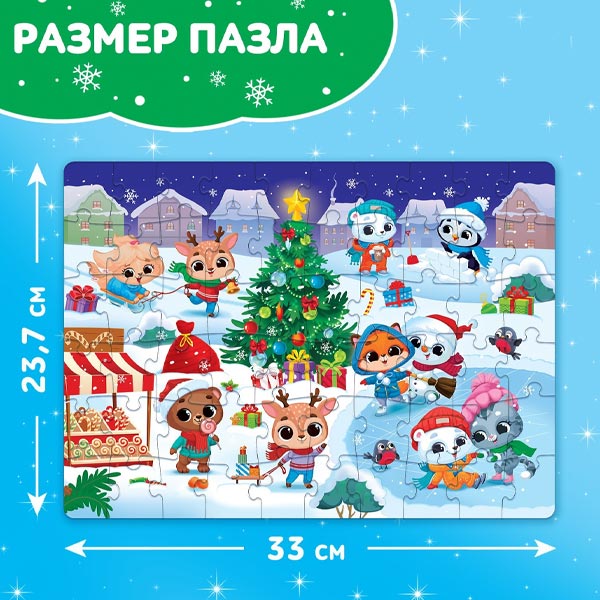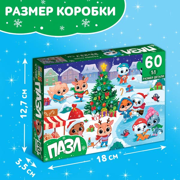 Ребёнок соберёт все 60 деталей в одно целое и получит красочную картинку размером 33 х 23,7 см.