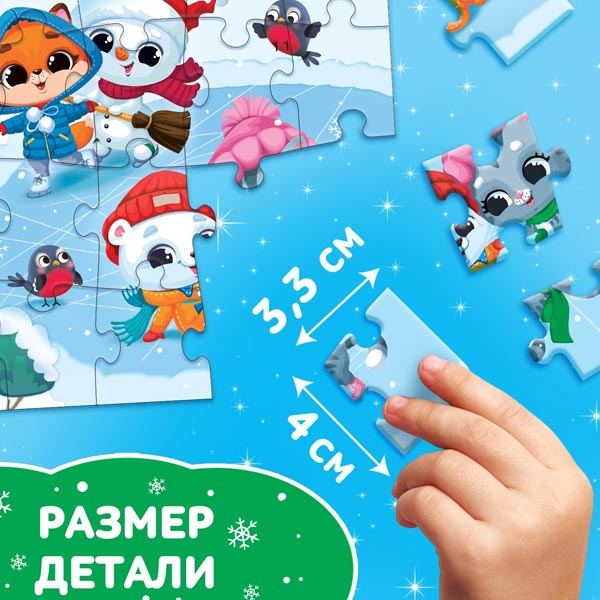 Пазл с новогодним сюжетом — то, что нужно для полезного и интересного досуга! Такой подарок поможет ребёнку скрасить ожидание Нового года, а также потренировать мелкую моторику, внимательность, логическое мышление и память.