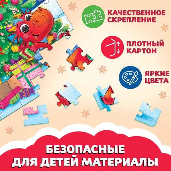 Пазл — это занимательная развивающая игра, которая стимулирует познавательную активность и помогает упорядочить мысли. Такой подарок поможет ребёнку скрасить ожидание Нового года, а также потренировать мелкую моторику, внимательность, логическое мышление и память.