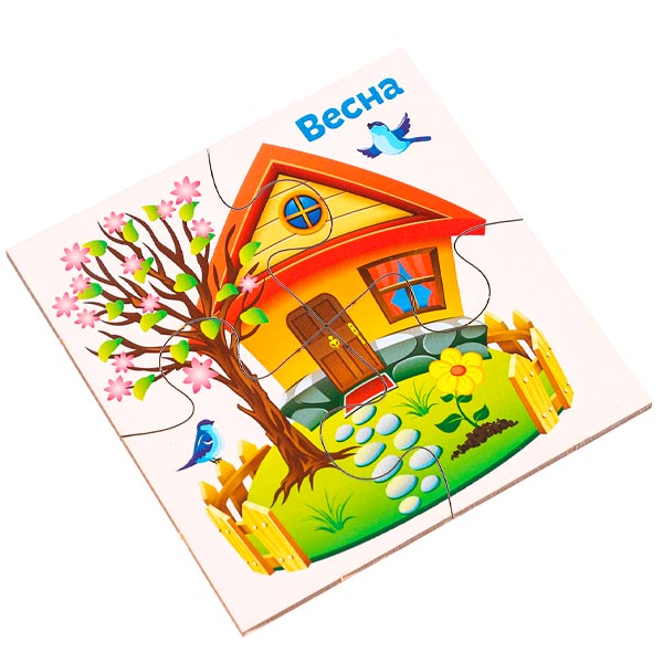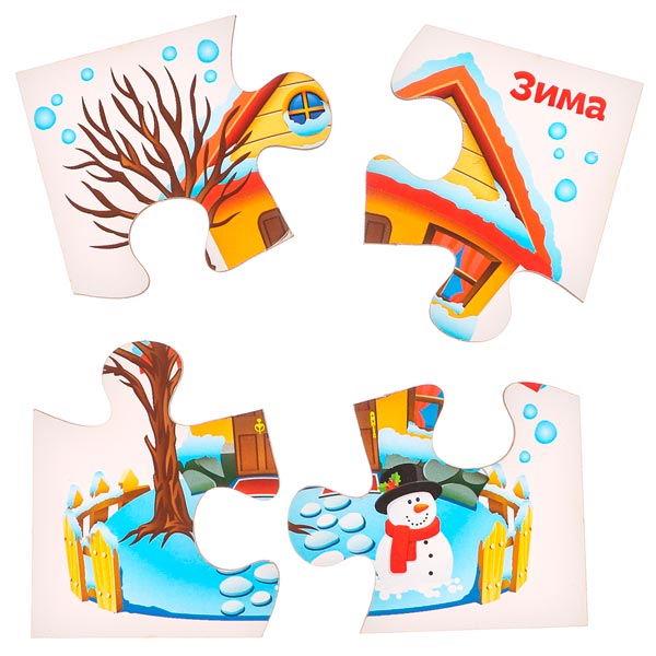 Яркий пазл подойдёт для самых маленьких деток, каждый их них состоит из четырёх элементов. Насыщенные цвета потренируют зрительное восприятие крохи. Расскажите ребёнку о временах года — это поможет развить кругозор малыша.