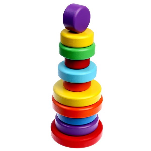 Классическая детская радужная пирамидка - это первый конструктор с которым ребенок познает цвета, размеры и формы предметов. Яркие и насыщенные цвета пирамидки MEGA TOYS соответствуют педагогическим стандартам развивающей игрушки. Многоступенчатая обработка игрушки делает деревянную пирамидку тактильно приятной, а закругленные края деталей безопасны для самых маленьких детей.