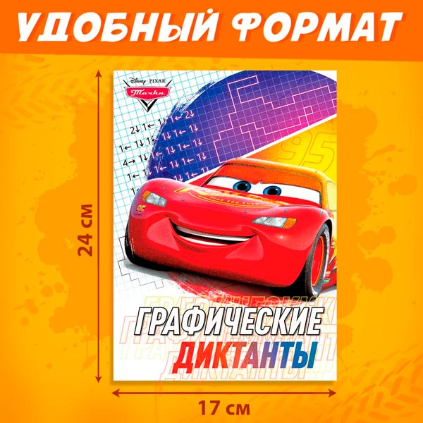 Графические диктанты в формате книжки — увлекательное и полезное занятие для детей 5–7 лет. Простые схемы рисования по клеточкам помогут ребёнку развивать усидчивость, внимательность и аккуратность, а также подготовят руку к письму. Тематика рисунков вдохновлена миром мультфильма Тачки, что делает процесс ещё более интересным для юных любителей автомобилей.