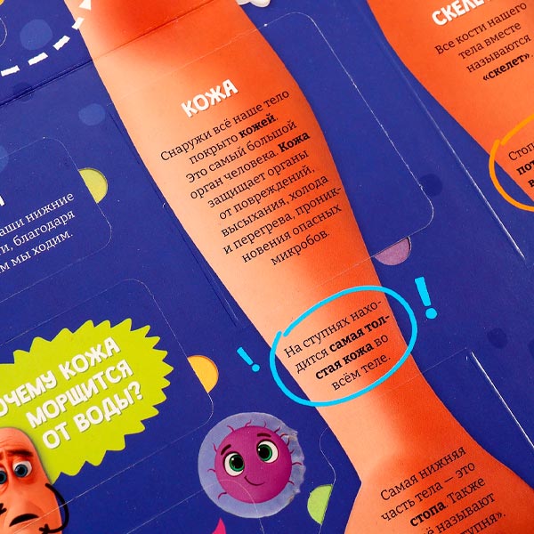 - Издание содержит 40 окошек, которые скрывают интересные факты о строении человеческого тела.
