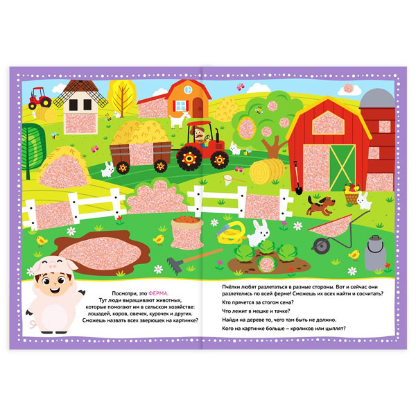 За такой книжкой ваш ребёнок проведёт время с пользой и удовольствием, узнает много нового и интересного. Веселые задания помогут потренировать малышу внимательность, память и счет, а главное - заглядывать в волшебные окошки безумно интересно.