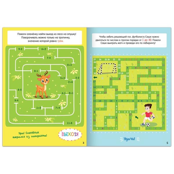 Книга-игра "Математические лабиринты" создана специально для любителей головоломок. В ней собраны задания, которые помогут ребёнку отработать навыки счёта.