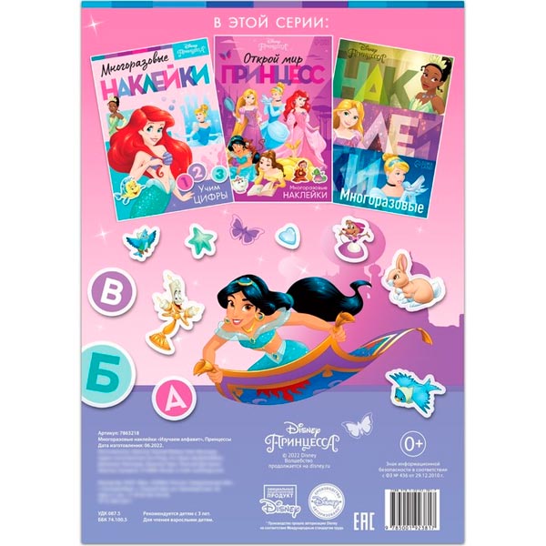 Изучаем алфавит - многоразовые наклейки Disney из серии Принцессы 7863218