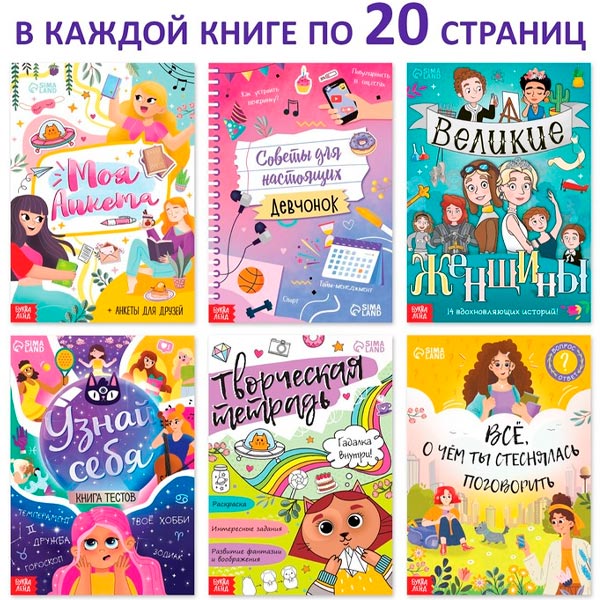 Набор книг для девочек содержит в себе 6 изданий различной тематики: