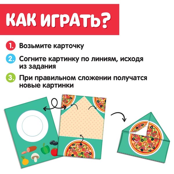 Проявляйте фантазию и тренируйте логику с развивающим набором "Играй-ка, сгибай-ка". Складывайте картинки, чтобы выполнить задания с карточки. Скучать не придётся — в наборе вы найдёте целых 30 разнообразных картинок на сгибалках.