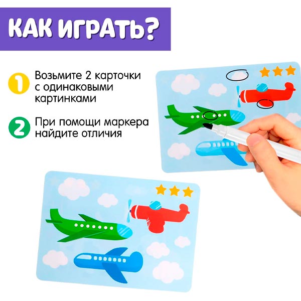 Польза занятий с набором "Найди отличия"? С этой игрой малыш потренирует логическое мышление, навыки сравнения, внимание, память и мелкую моторику рук.