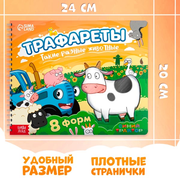 Книга "Трафареты. Такие разные животные", Синий трактор. Детские трафареты для творчества позволят ребенку придумать сюжет своей истории, комбинируя карточки набора. С самыми маленькими детьми можно учить домашних и лесных животных.