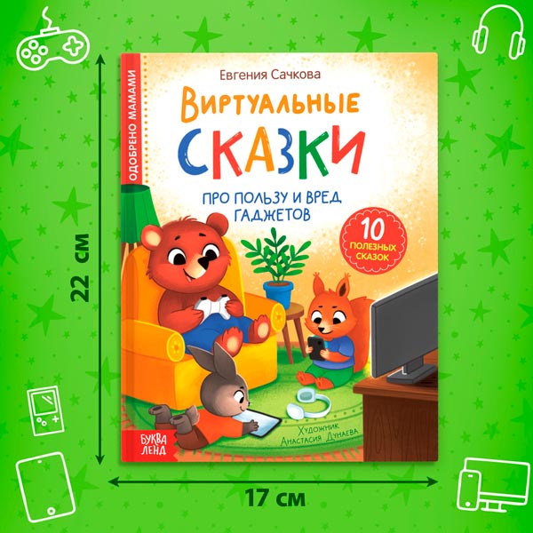Книга в твёрдом переплете "Виртуальные сказки. Про пользу и вред гаджетов" — обучающая книга, созданная педагогом-психологом Евгенией Сачковой.