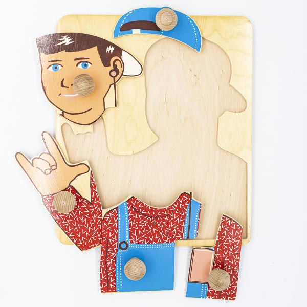 Развивающая игрушка из дерева рамка-вкладыш с ручками "Мальчик":