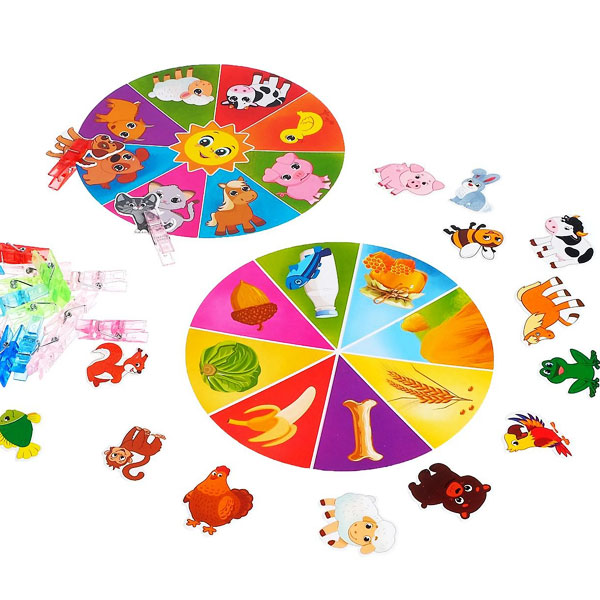 - Малыш прикрепляет каждого зверька прищепкой согласно заданию.