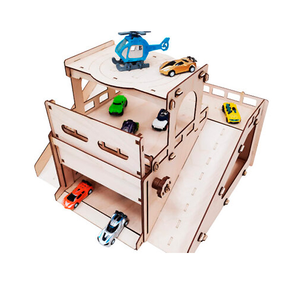 Парковка состоит из 2 этажей на которых можно разместить машинки. В ней предусмотрено множество съездов, две горки, вертолётная площадка и ворота с подъёмным механизмом. Парковка станет не только отличным подарком, но и незаменимой игрушкой для вашего ребенка, поможет развить мелкую моторику рук, пространственное мышление и фантазию. Парковку можно использовать как для игры, так и для хранения машинок.