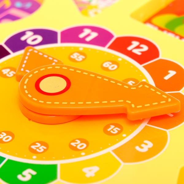 - Учит определять время по часовой стрелке, перемещая направление вручную.