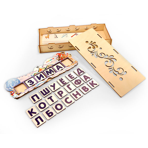 - Игра "Собери словечко". Составляйте "зимние" слова по первым звукам слов-картинок, которые изображены на карточке: для этого вставьте карточку в планшет и попросите ребенка определить первый звук в каждом слове, вставить соответствующие буквы в окошки. Когда все буквы будут определены, попросите прочитать получившееся слово.