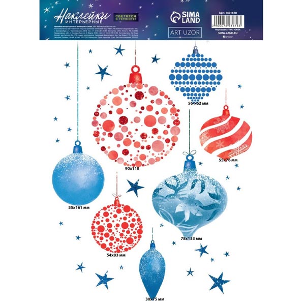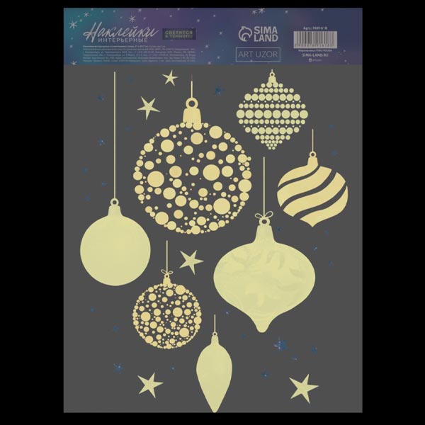 Новогодние игрушки - интерьерная наклейка светящаяся Арт Узор 7691618