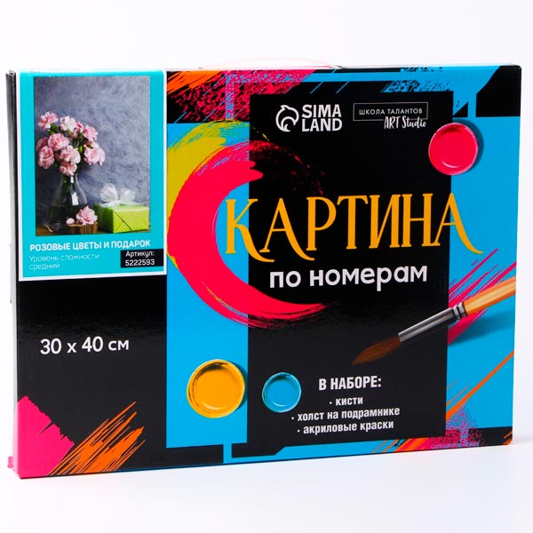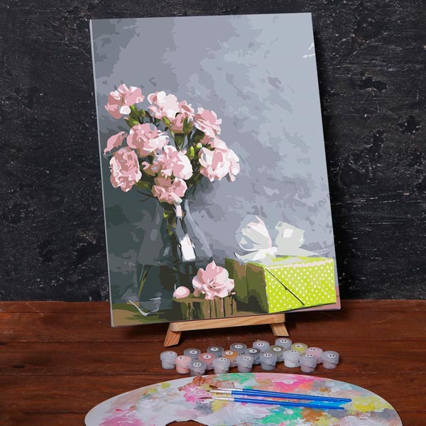 Картина по номерам на холсте с подрамником "Розовые цветы и подарок", 40х30 см понравится и детям, и взрослым.