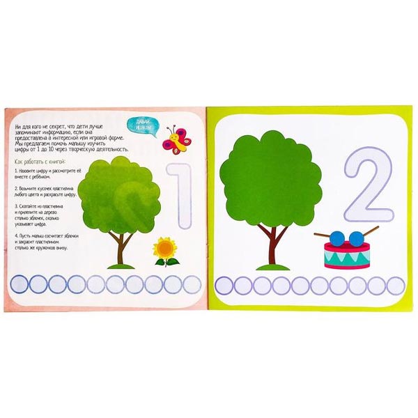 Во время занятий с книгой малыш познакомится с цифрами и освоит навыки счёта.