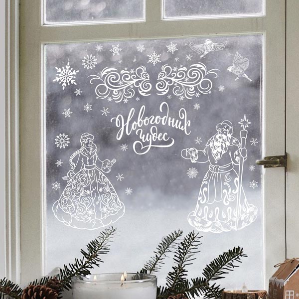 Дед Мороз и Снегурочка - наклейки на окна многоразовые Дарите счастье 9524116