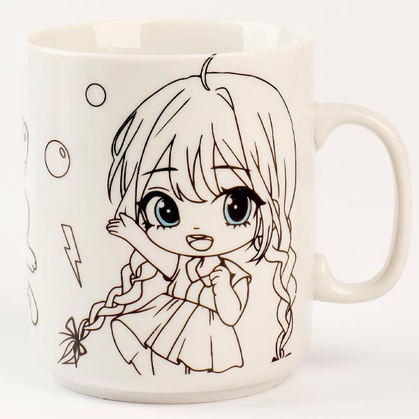 Часть рисунка уже раскрашена, раскрасьте оставшиеся части, и ваша оригинальная кружка готова! Уверяем, что ребёнку будет приятно иметь кружку, которая раскрашена им самостоятельно. Полученное изделие станет украшением любого стола или уникальным подарком близкому человеку.